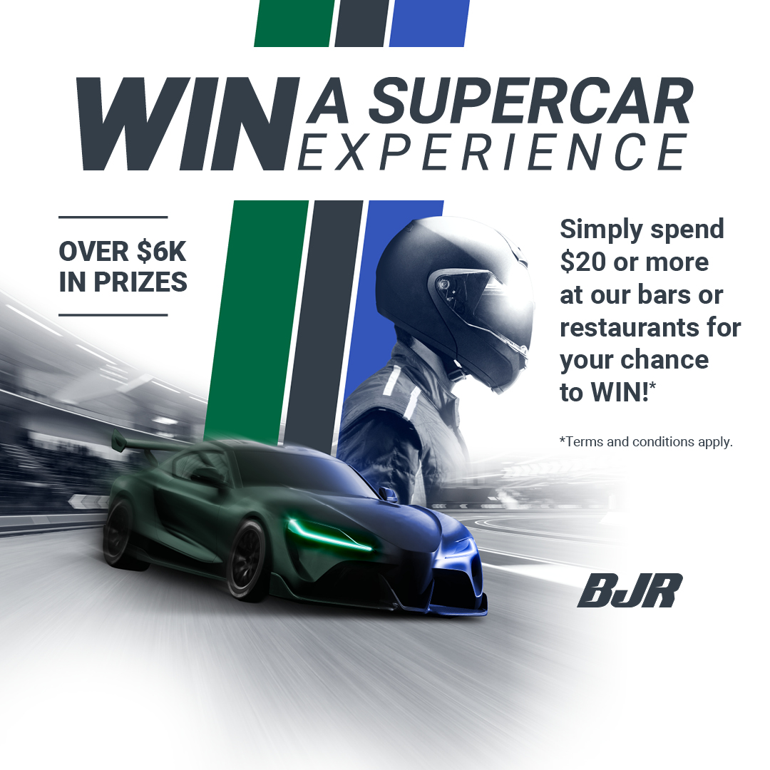 Spend $20 or more on food or beverage for your chance to win a Hot Lap Experience valued up to $5,000 or a Pit Tour Experience valued up to $1,100 at the Repco Supercar Championship.